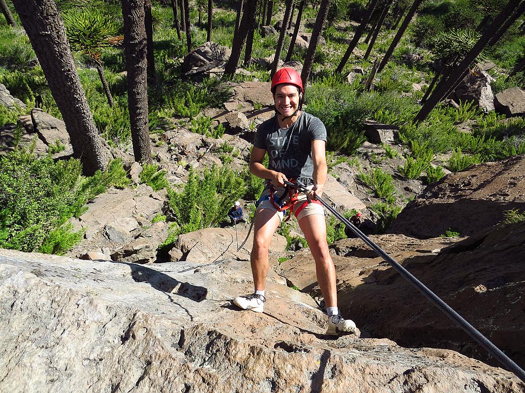 Antes que nada te cuento que el rappel es el descenso de paredes verticales de roca con cuerdas y arneses, y es una excursión de mucha diversión donde jugamos con la “Ley de Gravedad”. Es perfecta para todas las edades, con o sin experiencia, en un lugar rodeado de Araucarias que está a solo 15 minutos de caminata de Caviahue.